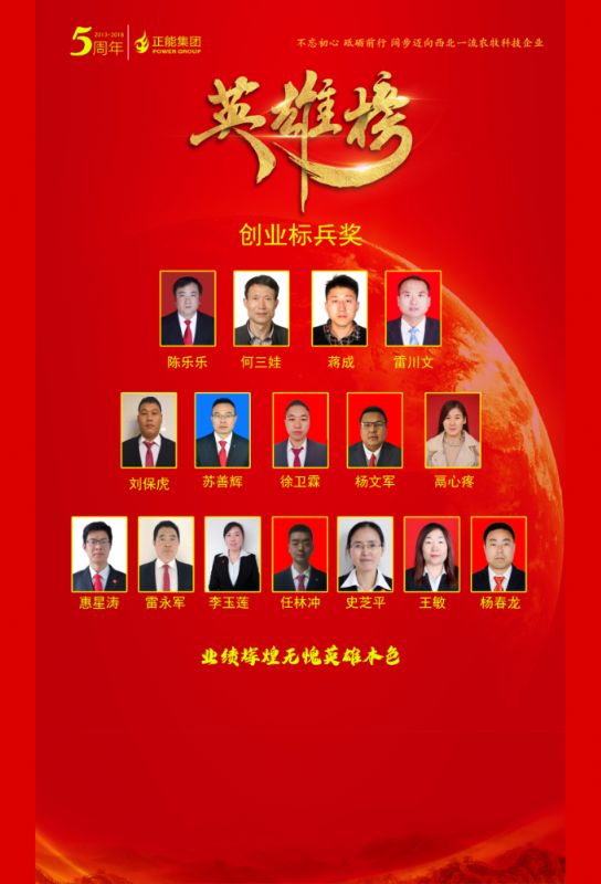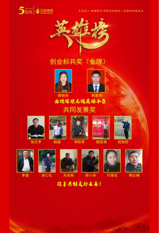 正能集團(tuán)創(chuàng)業(yè)五周年慶典創(chuàng)業(yè)英雄榜