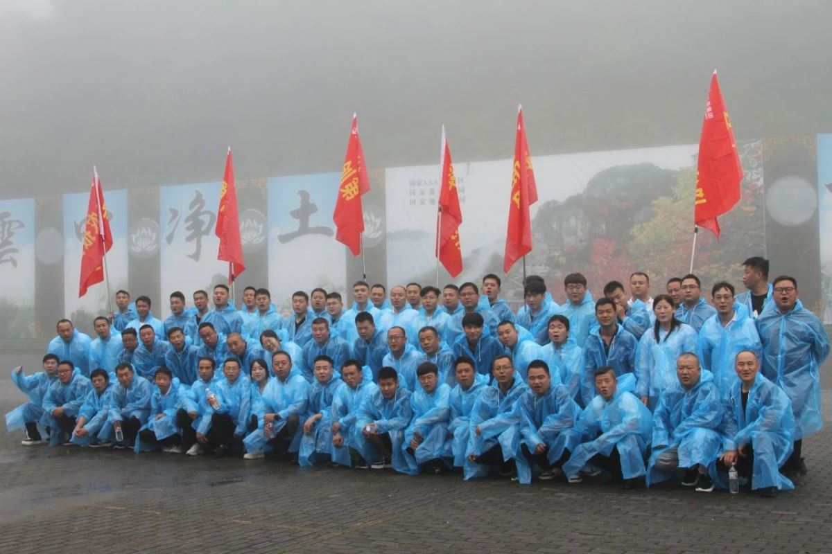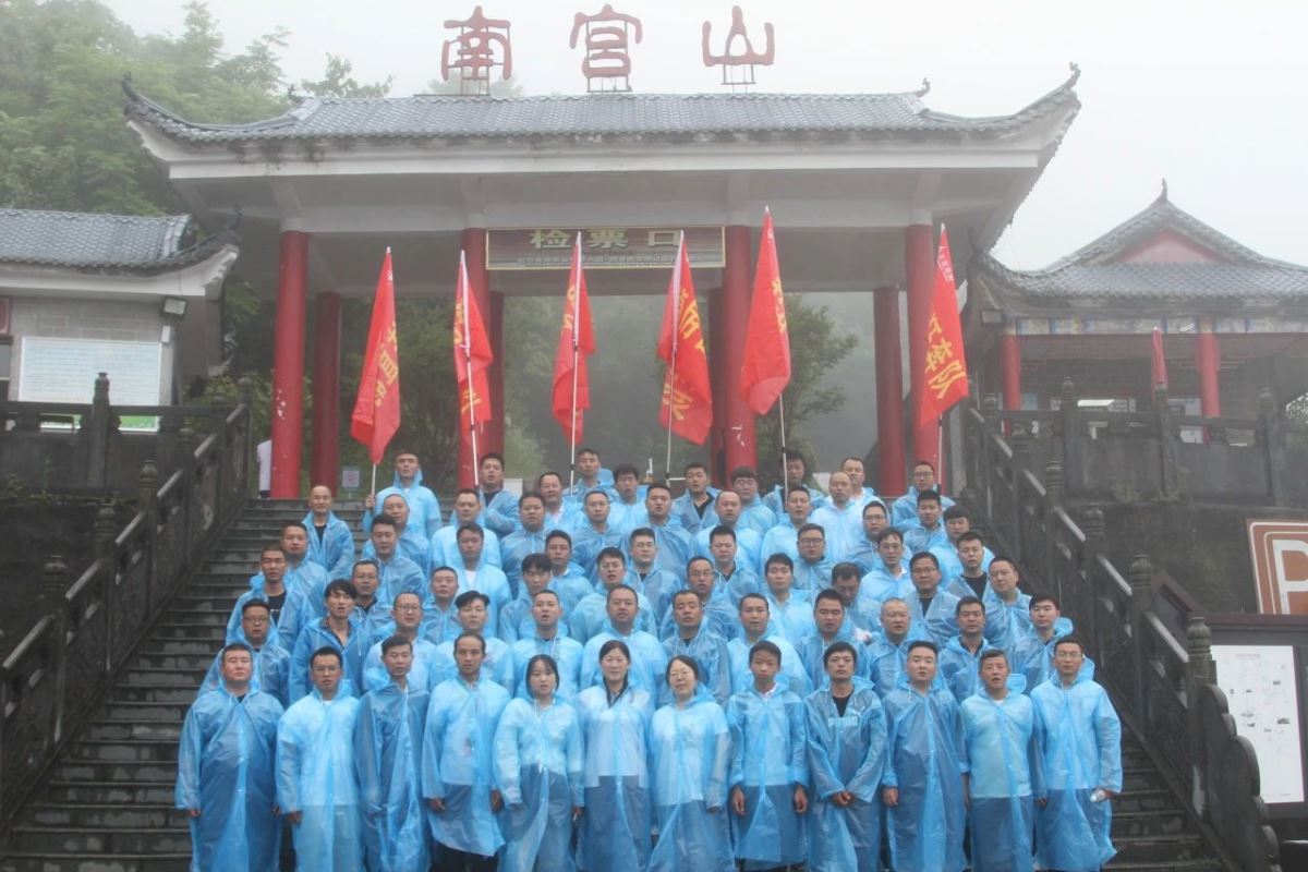 早餐后,開啟一天的團(tuán)隊建設(shè)活動,活動主題:“雨中爬山”,活動地點(diǎn):嵐皋縣南宮山國家森林公園,活動目標(biāo):沖頂南宮山金頂。上午9點(diǎn),風(fēng)雨無阻,所有參會老師整齊列隊,在6位旗手的帶領(lǐng)下,身穿藍(lán)色雨衣,統(tǒng)一來到山門口,隨著一聲令下,大家冒雨向最高點(diǎn)金頂進(jìn)軍,大雨滂沱,也擋不住正能人前進(jìn)的腳步,山洪頻發(fā),也澆不滅正能人登頂?shù)募で,期間,大家團(tuán)結(jié)一致、齊心協(xié)力,手挽手,相互攙扶、互相照顧、不畏艱險,心理卯足一股勁,不到山頂誓不罷休,從始至終體現(xiàn)出正能人不懼艱險、奮勇向前、英勇無畏不服輸?shù)膫ゴ髣?chuàng)業(yè)精神和非凡創(chuàng)業(yè)干勁。經(jīng)過近四個小時的持續(xù)攀登,大家渾身濕透,分不清汗水、淚水和雨水……,所有老師全部成功登頂,又一次為團(tuán)建交上了滿意的答卷。 董雄老師總結(jié)本次雨中爬山活動:體現(xiàn)了團(tuán)隊的重要性,沒有團(tuán)隊,個人將失去意志力,將很難登頂。 收獲,這次特別的雨中爬山活動,別具一格,熔煉了心智、磨煉了意志、突破了自我、增強(qiáng)了信心、提升了團(tuán)隊意識、培養(yǎng)了團(tuán)隊精神。